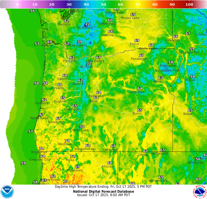 CPC Key Message issued October 15, 2025 and updated October 16, 2025 for the period of October 24 to 27, 2025. A high risk (greater than 60 percent) of heavy precipitation is posted across coastal portions of southern Oregon and northern California. A moderate risk of heavy precipitation (40 to 60 percent) stretches from northern California into the western half of Oregon and Washington. Flooding is possible for Northwest Washington. High winds (moderate risk) are also possible for these regions.  A high risk of heavy snow is posted for high elevation regions of northern California and southern Oregon, with a corresponding moderate risk over the northern Sierra Nevada and Cascades. A moderate risk of heavy snow is also favored for higher elevations of the Great Basin and Northern Rockies, along with a moderate risk of high winds for parts of MT, WY, northeastern UT, and northwestern CO. Travel may be impacted by heavy rain, snow, and wind. Heavy rain will also have the potential to produce small stream and urban flooding, though confidence is not as high at this point. Interests should continue to monitor forecasts.